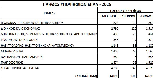 Επίσης, δίνονται στη δημοσιότητα στατιστικά στοιχεία των βαθμολογικών επιδόσεων των υποψηφίων ΓΕΛ και ΕΠΑ.Λ. Για τα στατιστικά στοιχεία πατήστε ΕΔΩ.