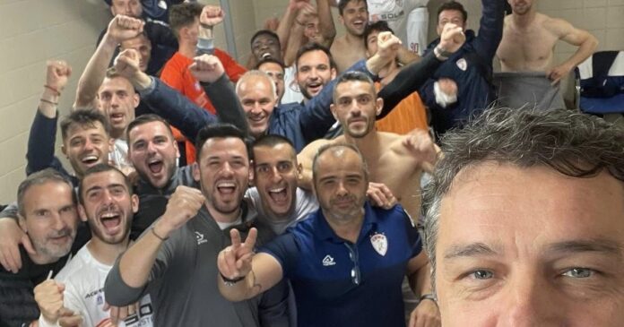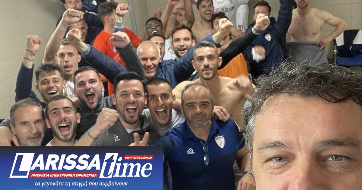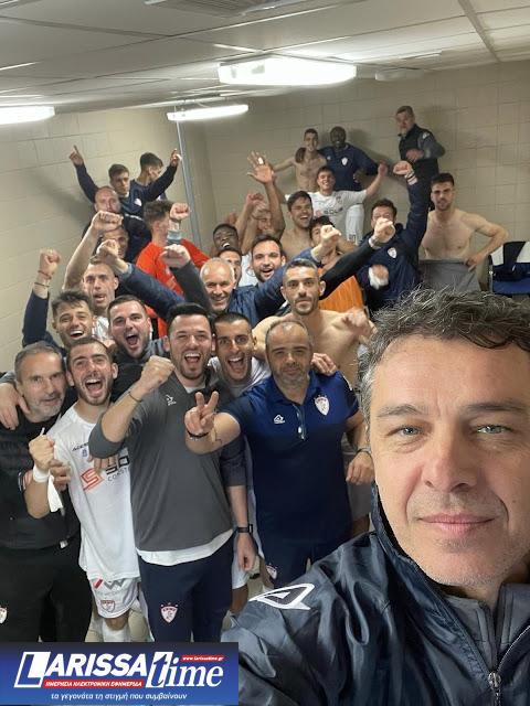 Οι ποδοσφαιριστές της ΑΕΛ, μετά τη λήξη του εκτός έδρας αγώνα με τη Νίκη Βόλου, που έγινε στο πλαίσιο της 25ης αγωνιστικής του 1ου ομίλου του πρωταθλήματος της Super League 2, στα αποδυτήρια του Πανθεσσαλικού Σταδίου, πανηγύρισαν τη νίκη βγάζοντας selfie φωτογραφία.