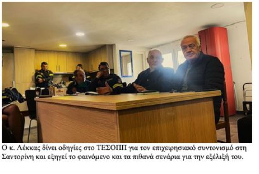 Ο κ. Λέκκας, με βάση τις προτάσεις της Επιτροπής Εκτίμησης Σεισμικού Κινδύνου και Μείωσης της Σεισμικής Διακινδύνευσης και της Επιτροπής Παρακολούθησης Ελληνικού Ηφαιστειακού Τόξου, παρουσίασε τα πιθανά σενάρια εξέλιξης της κατάστασης, εξηγώντας τη χρονική κλίμακα και τον απαιτούμενο επιχειρησιακό σχεδιασμό για κάθε περίπτωση.