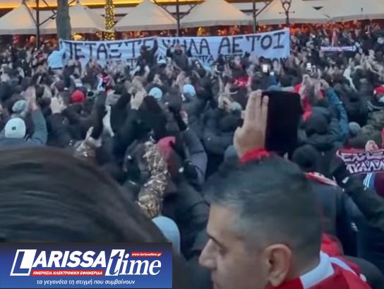 Οι ερυθρόλευκοι οπαδοί είχαν συγκεντρωθεί σε κεντρικό σημείο της πόλης, προτού κατευθυνθούν προς την «Johan Cruyff Arena», όπου στις 22:00 ο Ολυμπιακός αντιμετωπίζει τον Άγιαξ για το Champions League.