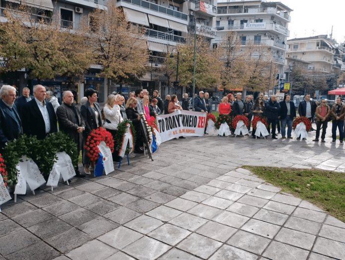 Την 52η επέτειο της εξέγερσης του Πολυτεχνείου τίμησαν φορείς της Λάρισας σε εκδήλωση διοργάνωσε το Νομαρχιακό Τμήμα της ΑΔΕΔΕ στην πλατεία Ρήγα Φεραίου στο κέντρο της πόλης.