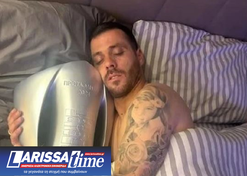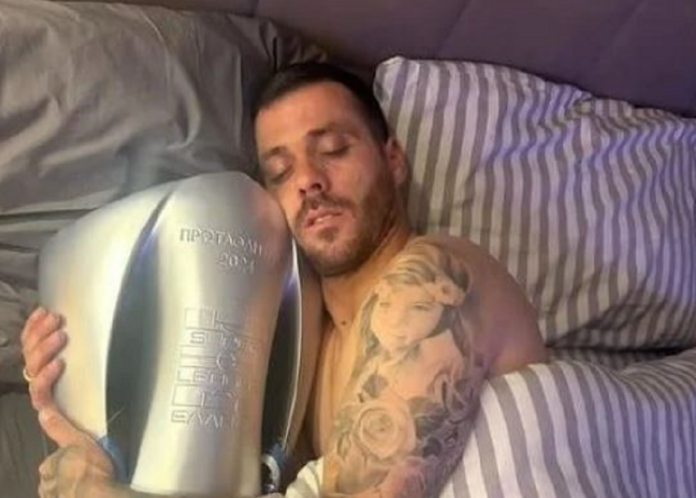 Ο Αντρέ Βιεϊρίνια φωτογραφήθηκε με το τρόπαιο του Πρωταθλητή στο κρεβάτι του και έγραψε «Καληνύχτα Θεσσαλονίκη».