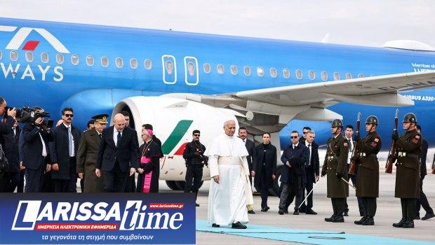 Πρόκειται για την πρώτη επίσκεψη Πάπα στην Τουρκία από το 1967 και στο αεροδρόμιο τον υποδέχτηκαν υπουργοί της τουρκικής κυβέρνησης.