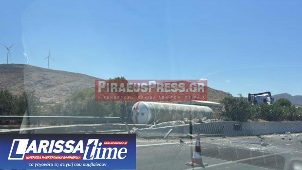 Το βαρύ όχημα κινήθηκε ανεξέλεγκτο στα προστατευτικά τοιχία και τις μπάρες του διαζώματος, διαλύοντάς τα και εισβάλλοντας στο αντίθετο ρεύμα κυκλοφορίας, όπου ανετράπη. Ο τράκτορας καρφώθηκε στο διαχωριστικό, ενώ το βυτίο ανετράπη στο ρεύμα κυκλοφορίας προς Αθήνα στο ύψος της Υλίκης.