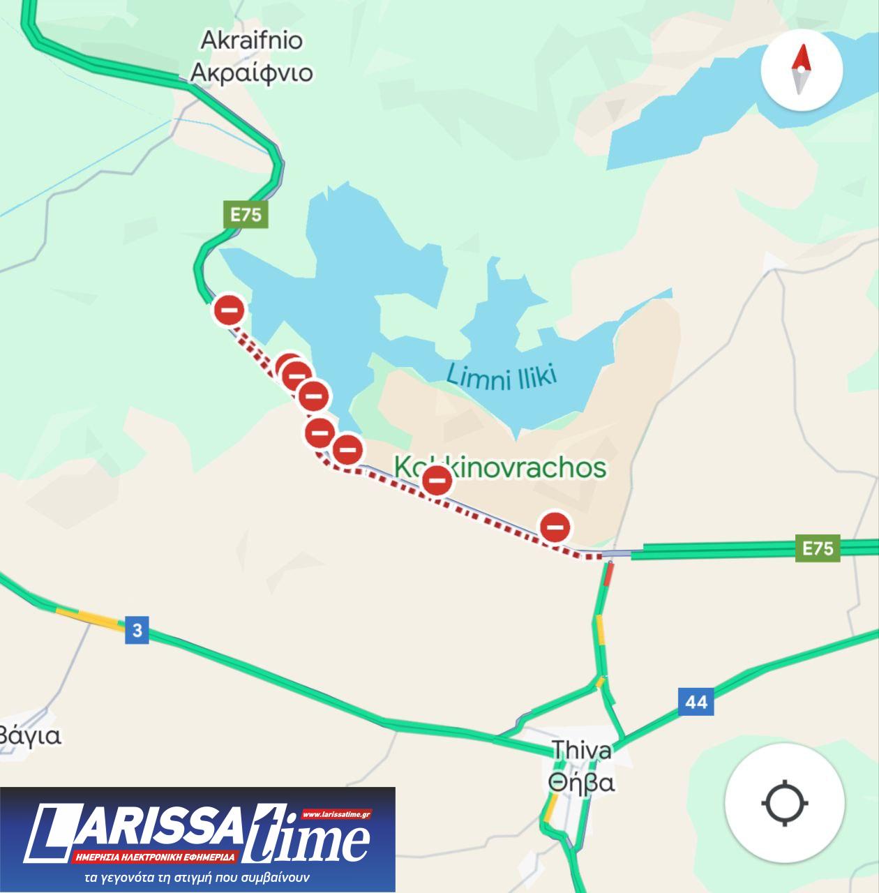 Η κυκλοφορία των οχημάτων γίνεται από παρακαμπτήριους οδούς. Πιο συγκεκριμένα, εκτροπή της κυκλοφορίας γίνεται στο 90ο χλμ στο ύψος της Θήβας για το ρεύμα προς Λαμία και στο 100ο χλμ στον ανισόπεδο κόμβο Ακραιφνίου για όσα οχήματα κινούνται προς Αθήνα.