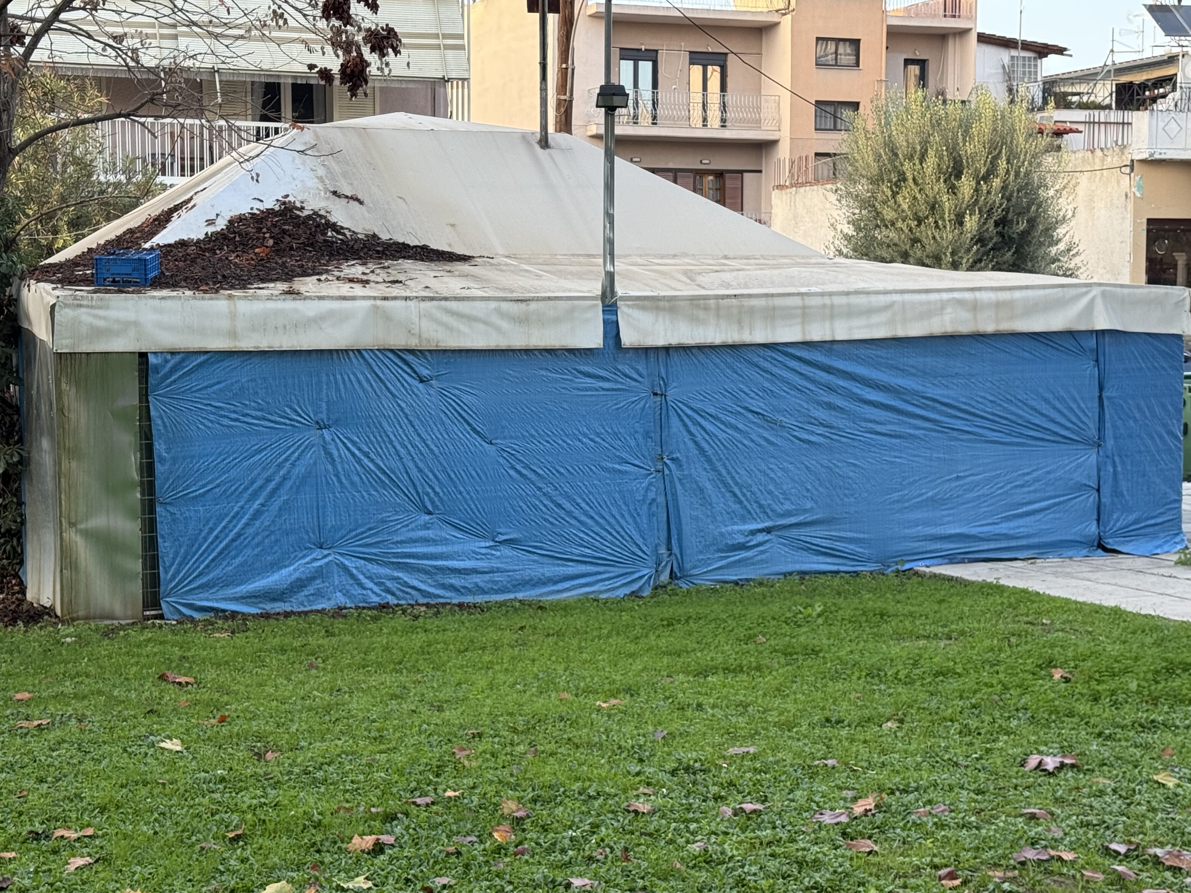 Θα μπορούσε να είναι κατασκευή σε σεισμόπληκτη περιοχή, κατοικία σε καταυλισμό, αποθήκη στην εμπόλεμη Ουκρανία ή οτιδήποτε σχετικό. Πρόκειται όμως για περίπτερο στη Λάρισα, στην περιοχή της Νεάπολης, σε διαστάσεις που θα ζήλευαν ακόμα και τα σούπερ μάρκετ…