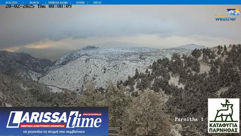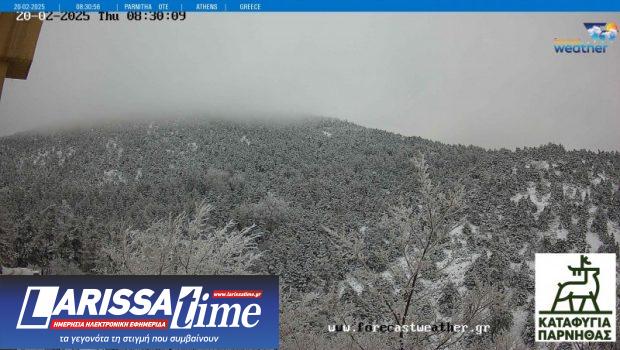 Φωτογραφία από την χιονόπτωση που σημειώνεται στην Πάρνηθα.