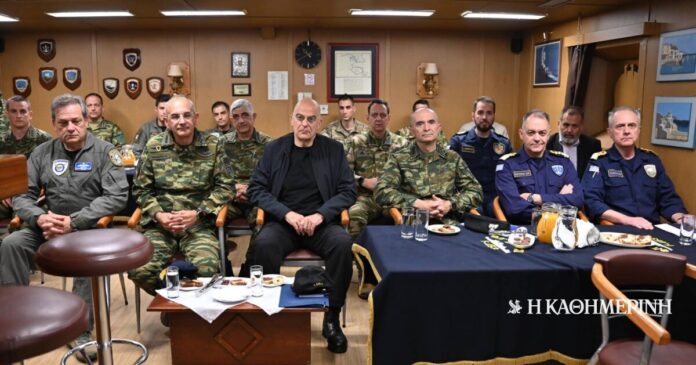 Την άσκηση «ΚΑΤΑΙΓΙΣ 24» –που διεξάγεται στην ευρύτερη περιοχή του Ανατολικού και του Νοτίου Αιγαίου– παρακολούθησε χθες το βράδυ ο υπουργός Εθνικής Αμυνας, Νίκος Δένδιας, επιβαίνων της φρεγάτας «ΣΠΕΤΣΑΙ», στην οποία μετέβη συνοδευόμενος από τον αρχηγό ΓΕΕΘΑ στρατηγό, Δημήτριο Χούπη.