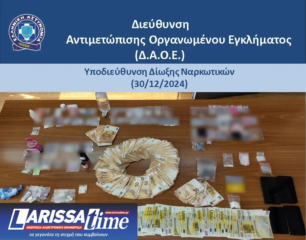 Η τελευταία μάλιστα εντοπίστηκε σε υπνοδωμάτιο να κατέχει 45- συσκευασίες (νάιλον, χάρτινες, μπουκαλάκια, πλαστικό δοχείο) με κοκαΐνη βάρους -79,2- γραμμαρίων, -117- δισκία ECSTASY, -23,5- φαρμακευτικά δισκία, ροζ κοκαΐνη βάρους -3,3- γραμμαρίων, κρυσταλλική μεθαμφεταμίνη βάρους -2,8- γραμμαρίων, -11- χαρτάκια εμποτισμένα με LSD και MDMA βάρους -0,7- γραμμαρίων.