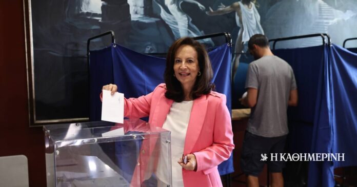 «Πάμε κάλπες», ήταν το μήνυμα που απηύθυνε η Αννα Διαμαντοπούλου στους πολίτες μόλις ψήφισε στις 10.30 στο Πνευματικό Κέντρο του Δήμου Αθηναίων.