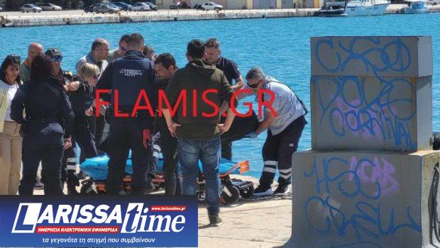 Πληροφορίες του Flamis.gr αναφέρουν ότι η γυναίκα εκινείτο καθοδικά στον μώλο και στο ύψος της εξέδρας που αγκυροβολεί το πλοίο για Κεφαλονιά έστριψε και έπεσε στη θάλασσα. Ερευνες διενεργεί το Λιμενικό.