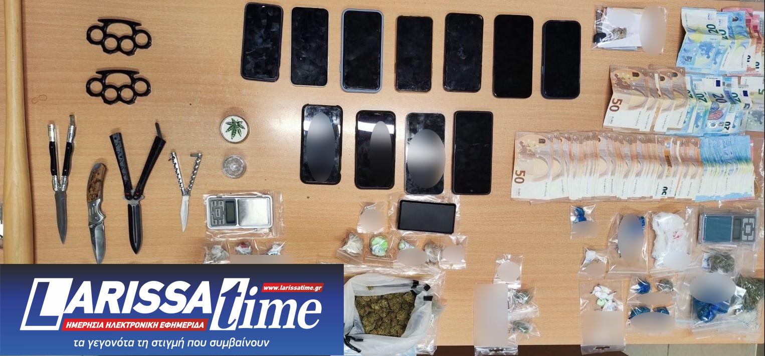 Σε έρευνες που διενεργήθηκαν στις οικίες των συλληφθέντων αλλά και σε σωματικές έρευνες οι αστυνομικοί βρήκαν και κατέσχεσαν 212,9 γραμμάρια ακατέργαστης κάνναβης, 21,8 γραμμάρια κοκαΐνης, 29,7 γραμμάρια MDMA, δύο αυτοσχέδια τσιγάρα με μίγμα κάνναβης και καπνού, τέσσερα μαχαίρια (τύπου πεταλούδα), δύο σιδερογροθιές, ένα ξύλινο μπαστούνι, τρεις ηλεκτρονικές ζυγαριές ακριβείας, δύο αυτοκίνητα και μία μοτοσικλέτα, καθώς και 4.450 ευρώ.
