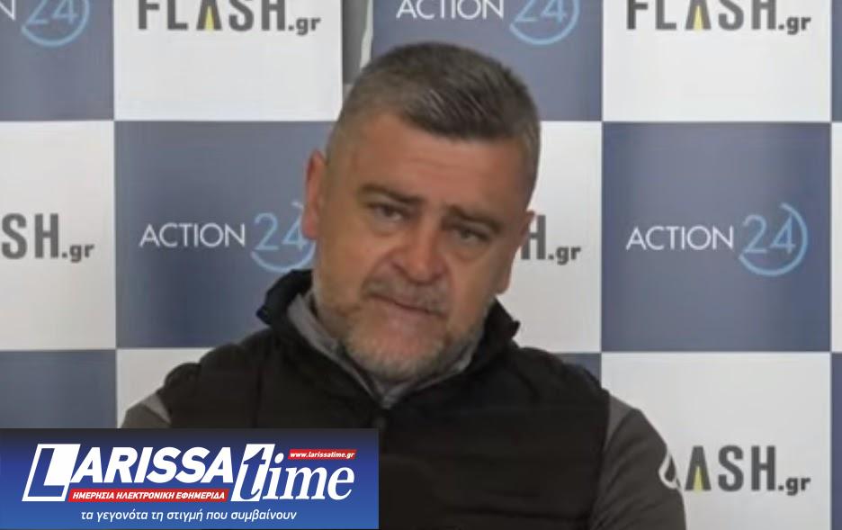 «Λοιπόν ξεκινήσαμε τα play off είναι μια διαδικασία σημαντική και ιδιαίτερη, γιατί είναι ένα μίνι πρωτάθλημα απέναντι σε πάρα πολύ καλές ομάδες. Ομάδες οι οποίες διακρίθηκαν σε όλους τους τομείς από την αρχή της αγωνιστικής περιόδου, άρα καταλαβαίνετε ότι είναι παιχνίδια τα οποία έχουνε πολύ μεγάλο βαθμό δυσκολίας, άρα η ετοιμασία της ομάδας μας πρέπει εκτός το αγωνιστικό πλάνο που για την ομάδα τη δικιά μας είναι είναι ξεκάθαρο το τι προσπαθούμε να βγάλουμε στον αγωνιστικό χώρο πρέπει να έχουμε και ψυχικά αποθέματα και να είμαστε καθαροί πνευματικά για να μπορέσουμε για να διεκδικήσουμε έναν πολύ μεγάλο στόχο τον οποίον έχουμε θέσει από την αρχή. Ξέραμε ότι το πρόγραμμα δεν είναι υπέρ μας. Γνωρίζαμε ότι αντιμετωπίζουμε μία ομάδα, η οποία είναι το έχω πει έτσι κι αλλιώς πολλές φορές είναι από τις καλύτερες ομάδες κατηγορίες. Δουλέψαμε όλη την εβδομάδα, ετοιμαστήκαμε γι’ αυτό το παιχνίδι και νομίζω ότι γενικά είμαι πάρα πολύ ευχαριστημένος από την εικόνα της ομάδας, δεν είμαι από το αποτέλεσμα. Στο πρώτο ημίχρονο είχαμε τον απόλυτο έλεγχο του ημιχρόνου, είχαμε πάρα πολύ καλή κατοχή της μπάλας. Μέσα από αυτή την κατοχή μπορέσαμε και πετύχαμε ένα ωραίο γκολ. Είχαμε ευκαιρίες να διπλασιάσουμε το σκορ, γενικά ήμασταν μία ομάδα η οποία είχαμε μονολόγους στο παιχνίδι και κόντρα στη ροή του παιχνιδιού δεχτήκαμε ένα γκολ, το οποίο στατιστικά δεν το βάζω σαν ευκαιρία, θεωρώ ότι περισσότερο ήταν ένα λάθος δικό μας. Αυτά συμβαίνουν όμως στο ποδόσφαιρο, το ποδόσφαιρο είναι παιχνίδι λαθών. Μπήκαμε στο ημίχρονο με το 1-1, αλλά με μια πολύ καλή εικόνα, αυτό που είπα στα παιδιά είναι ότι πρέπει να κρατήσουμε αυτό το ρυθμό. Είμαστε μία ομάδα του η οποία μπορούμε να ξαναμπούμε μπροστά στο σκορ. Το δεύτερο όμως ημίχρονο για εμάς δεν ήταν αυτό που θέλαμε, γιατί δεν είχαμε ένα ρυθμό και το παιχνίδι βασίζεται κατά μεγάλο ποσοστό στο ρυθμό, είχαμε στιγμές. Ήταν ένα παιχνίδι πιο μοιρασμένο και με στιγμές από μας, ότι έχει να κάνει δηλαδή με τις ευκαιρίες, γιατί εμείς είχαμε τις ευκαιρίες του παιχνιδιού, όπως είναι μία από αυτές και το δοκάρι, το φάουλ του Κώστα Παπαγεωργίου, το σουτ του Πεντρόσο. Χάσαμε μία μοναδική ευκαιρία να κερδίσουμε αυτό το παιχνίδι και να είμαστε κοντά στον συνδιεκδικητή που είναι η ομάδα του Λεβαδειακού, που ξέραμε που εγώ από τη λίγη πείρα την οποία έχω, ήξερα ότι δύσκολα ή εύκολα θα περάσει από το Μακεδονικό. Κοιτάμε μπροστά, δεν μπορούμε να κάνουμε κάτι, έτσι κι αλλιώς κάτι διαφορετικό. Γνωρίζουμε ότι είμαστε μία ομάδα, η οποία γνωρίσαμε από την αρχή βάση κλήρωσης και βάση παιχνιδιών, ότι είμαστε μία ομάδα η οποία για να βγει θα χρειαζόταν επτά νίκες και μία ισοπαλία. Στο πρώτο παιχνίδι κάναμε την ισοπαλία, άρα στα επόμενα παιχνίδια πρέπει να διεκδικήσουμε επτά νίκες. Καταλαβαίνετε ότι δεν είναι εύκολο, αλλά θα το παλέψουμε, γιατί είμαστε μία μεγάλη ομάδα. Έχουμε πίστη στις δυνατότητές μας και τουλάχιστον θα εξαντλήσουμε οτιδήποτε περιθώριο έχουμε και να πάρουμε μέσα από τη δουλειά, μέσα από τα παιχνίδια αυτό που μας αναλογεί. Είμαστε μία ομάδα η οποία ότι προσπαθούμε να κάνουμε, το κάνουμε μέσα στον αγωνιστικό χώρο. Έχουμε πολλούς αστάθμητους παράγοντες απέναντί μας, αντίπαλοι μας, δεν χρειάζεται να τους αριθμήσω, γιατί όλοι είστε ποδοσφαιρικοί και τους καταλαβαίνετε, αλλά δεν μπορούμε να κάνουμε και κάτι διαφορετικό, από το να παλεύου