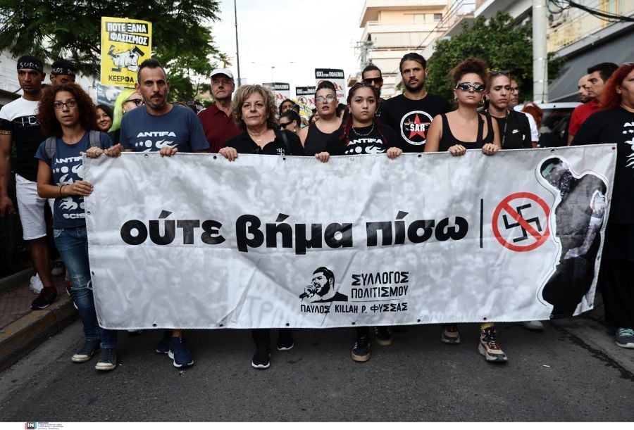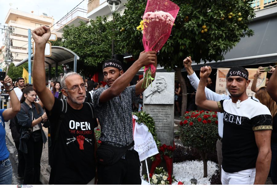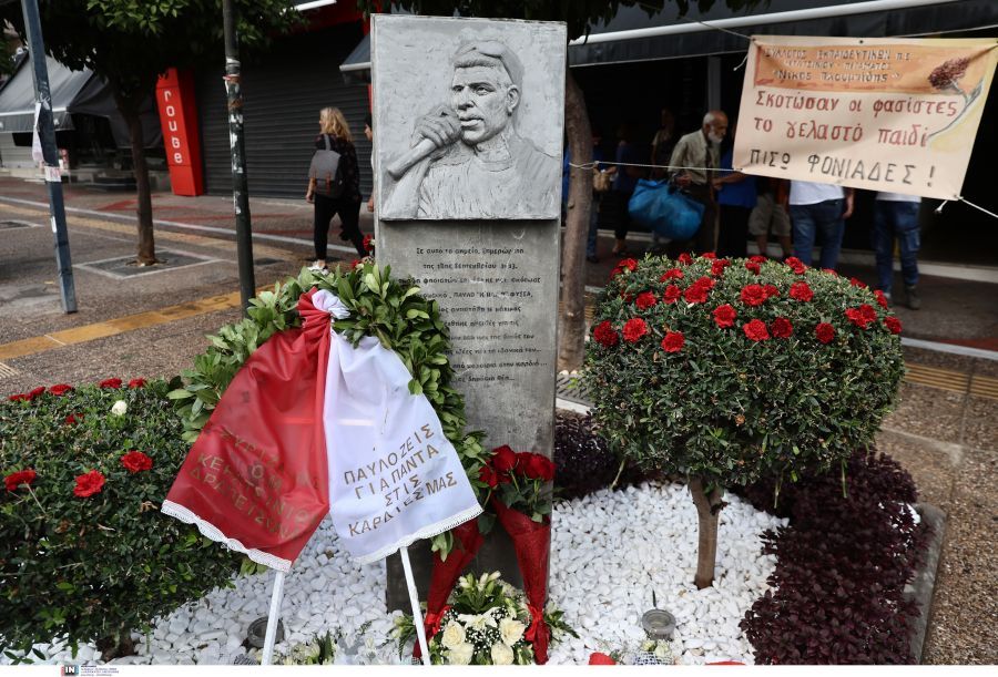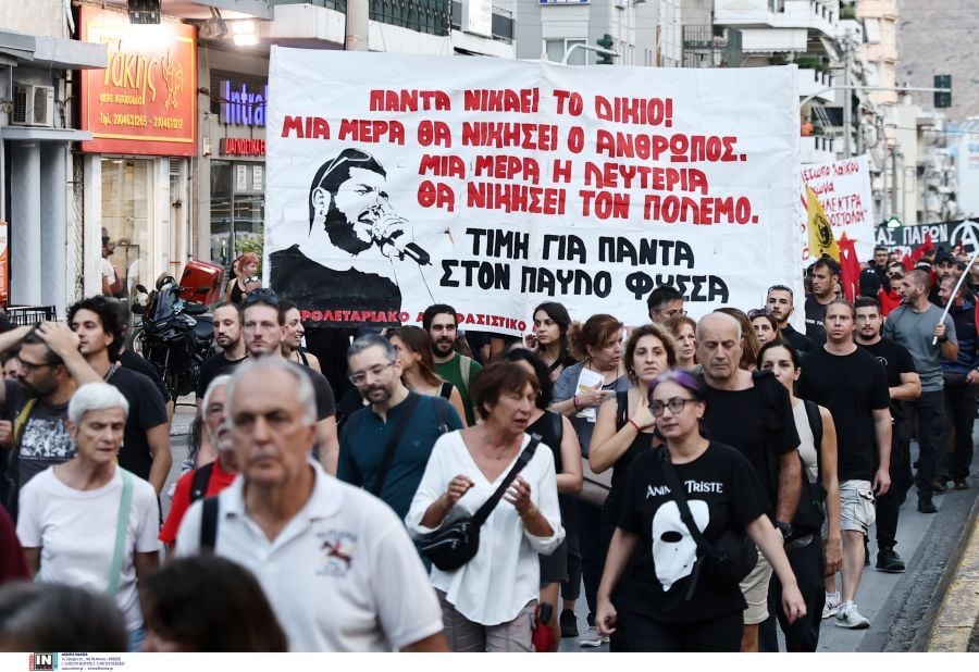 Νωρίτερα το απόγευμα της Τετάρτης, εκατοντάδες διαδηλωτές συγκεντρώθηκαν στην οδό Φύσσα 60, στο μνημείο του αδικοχαμένου καλλιτέχνη.