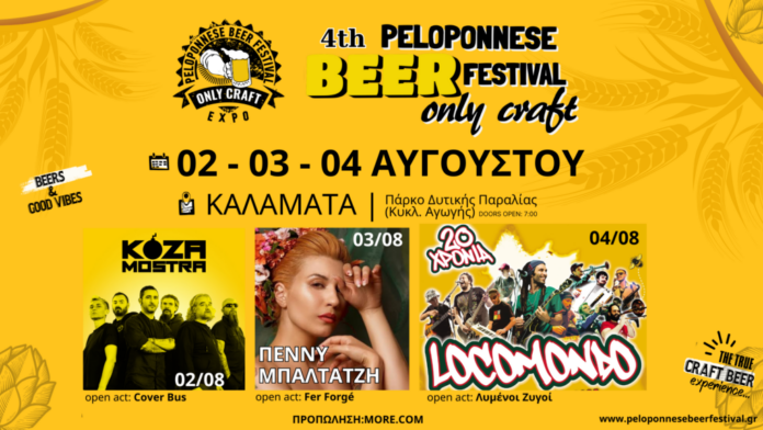 4th Peloponnese Beer Festival: Tο αγαπημένο event του καλοκαιριού επιστρέφει στην Καλαμάτα με Kοza Mostra, Πέννυ Mπαλτατζή και Locomondo