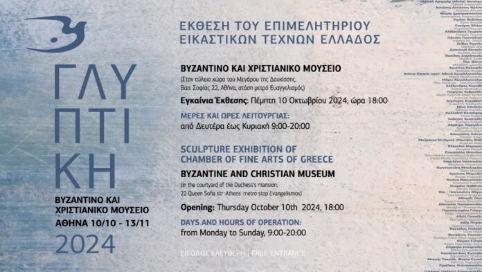 Η έκθεση Γλυπτικής στο Βυζαντινό και Χριστιανικό Μουσείο της Αθήνας, έναν από τους σημαντικότερους πυρήνες πολιτισμού της χώρας πραγματοποιείται και φέτος, για πέμπτη συνεχή χρονιά. Στην έκθεση, που έχει ελεύθερο θέμα, θα παρουσιαστούν την χρονιά αυτή 57 γλυπτά μεσαίων και μεγάλων διαστάσεων, δημιουργίες της τελευταίας πενταετίας. Με τον τρόπο αυτό το φιλότεχνο κοινό, αλλά και οι χιλιάδες των επισκεπτών του Μουσείου θα γνωρίσουν την πιο πρόσφατη εικαστική παραγωγή στον τομέα της γλυπτικής.