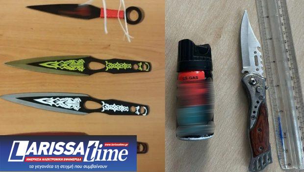 Συνολικά βρέθηκαν και κατασχέθηκαν, αναδιπλούμενος σουγιάς, σπρέι πιπεριού και 4 μαχαίρια.