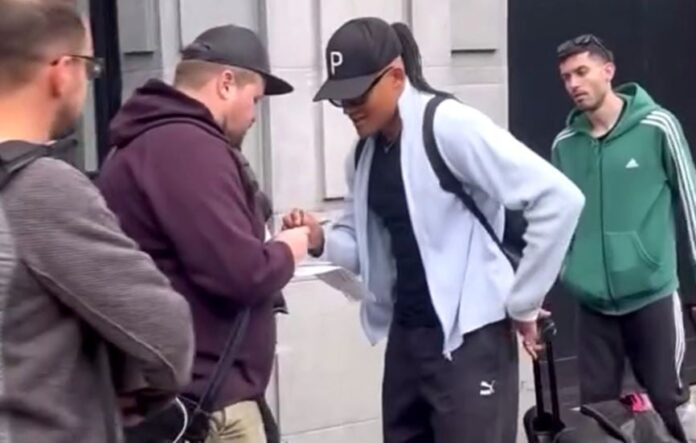 Όπως φαίνεται στο βίντεο περαστικοί σταμάτησαν τον «Μανόλο», ζητώντας του αυτόγραφα, όμως δεν συνέβη το ίδιο και με τον χρυσό Ολυμπιονίκη του μήκους, Μίλτο Τεντόγλου.