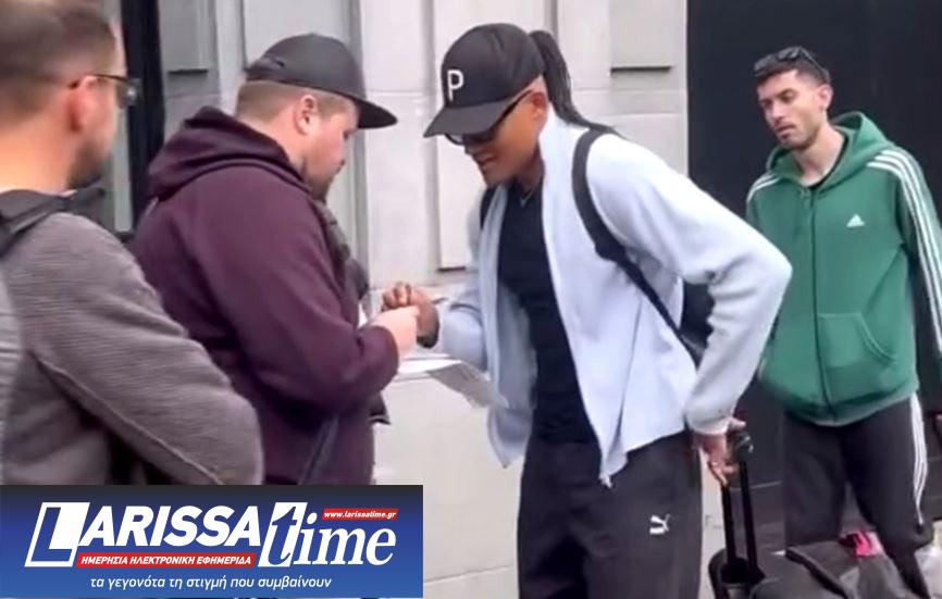 Κανείς δεν τον σταμάτησε να τού ζητήσει αυτόγραφο, με τον Μίλτο Τεντόγλου πάντως να μη δείχνει να ενοχλείται.