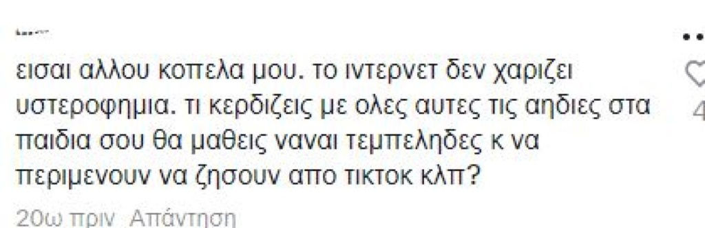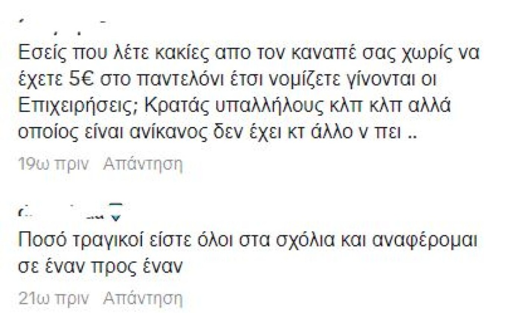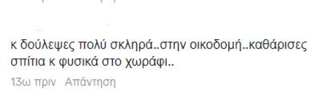 Η φράση που έγραψε είναι: «Αν δεν ήταν άνετα οικονομικά οι γονείς σου να σε στηρίξουν δεν θα μπορέσεις ποτέ να κάνεις τη δική σου επιχείρηση και να βγάλεις λεφτά».