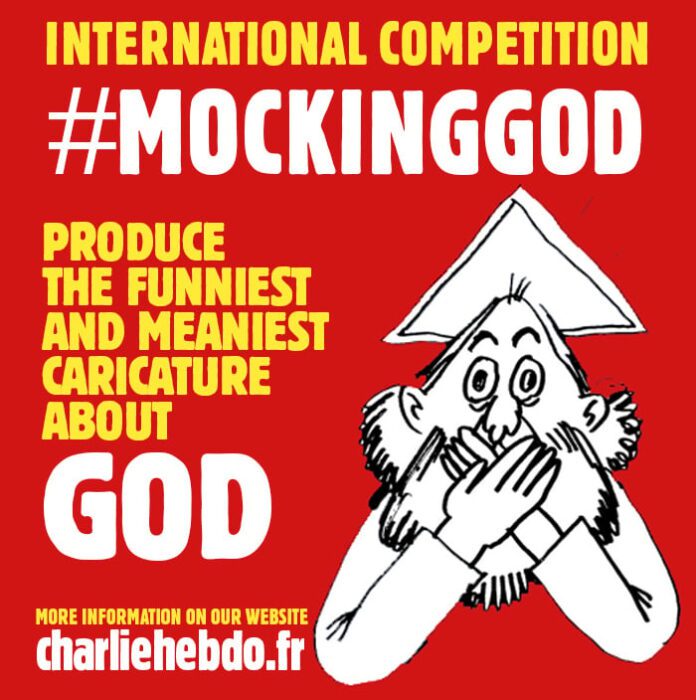 Σχεδόν δέκα χρόνια μετά την ισλαμιστική επίθεση που αποδεκάτισε τη συντακτική ομάδα της, η γαλλική σατιρική εφημερίδα Charlie Hebdo οργανώνει έναν διεθνή διαγωνισμό γελοιογραφίας με θέμα «Περιγελώντας τον Θεό» (#RireDeDieu / #MockingGod) προκειμένου να καταγγείλει «την επιβολή όλων των θρησκειών» στην κοινωνία.