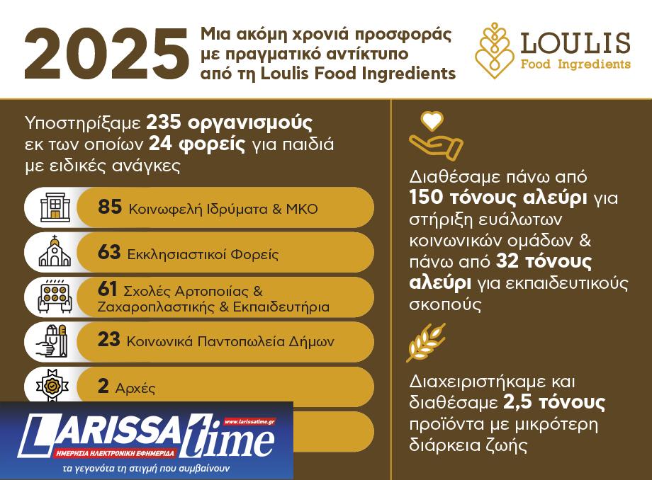 «Για τη Loulis Food Ingredients, η κοινωνική υπευθυνότητα αποτελεί αναπόσπαστο μέρος της επιχειρηματικής μας στρατηγικής. Μέσα από τη στήριξη ευάλωτων κοινωνικών ομάδων, τη μείωση της σπατάλης τροφίμων και την επένδυση στην εκπαίδευση, επιδιώκουμε να δημιουργούμε μακροπρόθεσμη αξία για την κοινωνία και τις επόμενες γενιές», δήλωσε η Λήδα Μαλικέντζου, ESG & Communication Manager της Loulis Food Ingredients.
