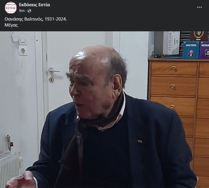 Πέθανε σε ηλικία 92 ετών ο βραβευμένος συγγραφέας Θανάσης Βαλτινός.