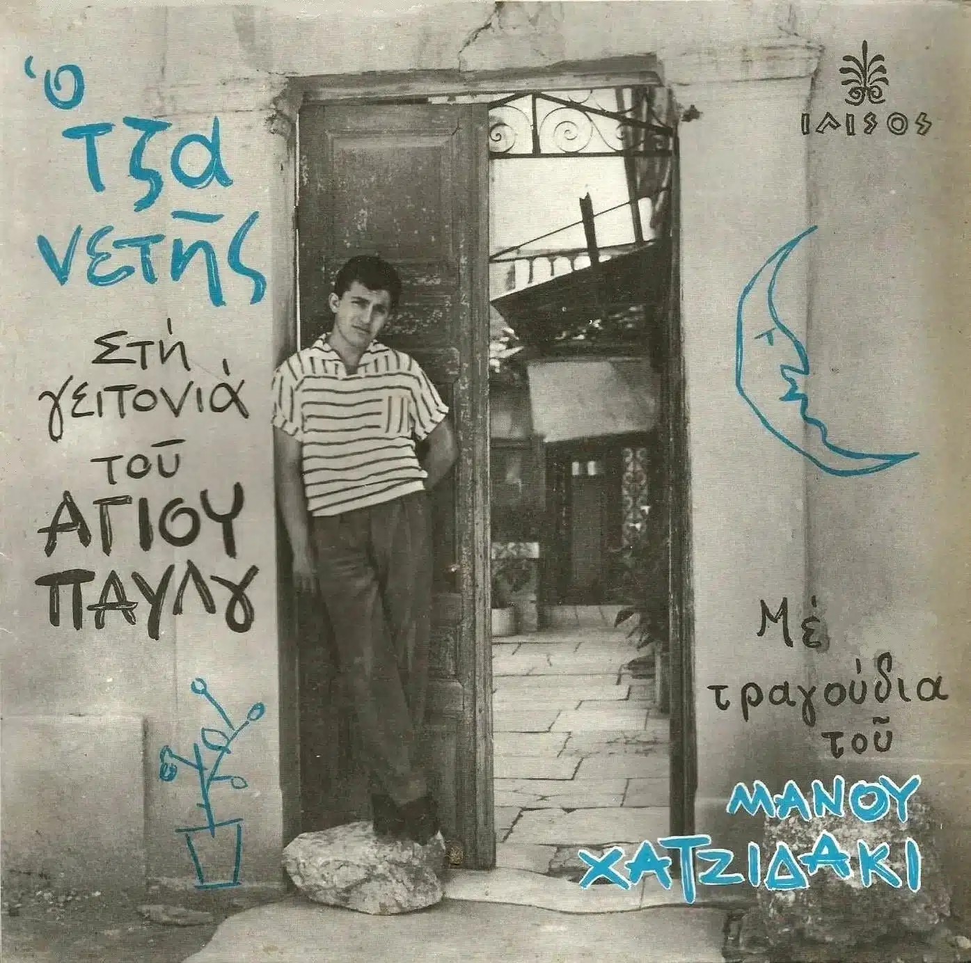 Το εξώφυλλο του ΕP «Ο Τζανετής στη γειτονιά του Αγίου Παύλου με τραγούδια του Μάνου Χατζιδάκι», που ετοίμαζε, το 1960, ο Μάνος Χατζιδάκις για τον Πάνο Τζανετή. Φωτογραφία από το αρχείο του Δημήτρη Βασιλειάδη / Β-Other Side Records – με ευγενική παραχώρηση.