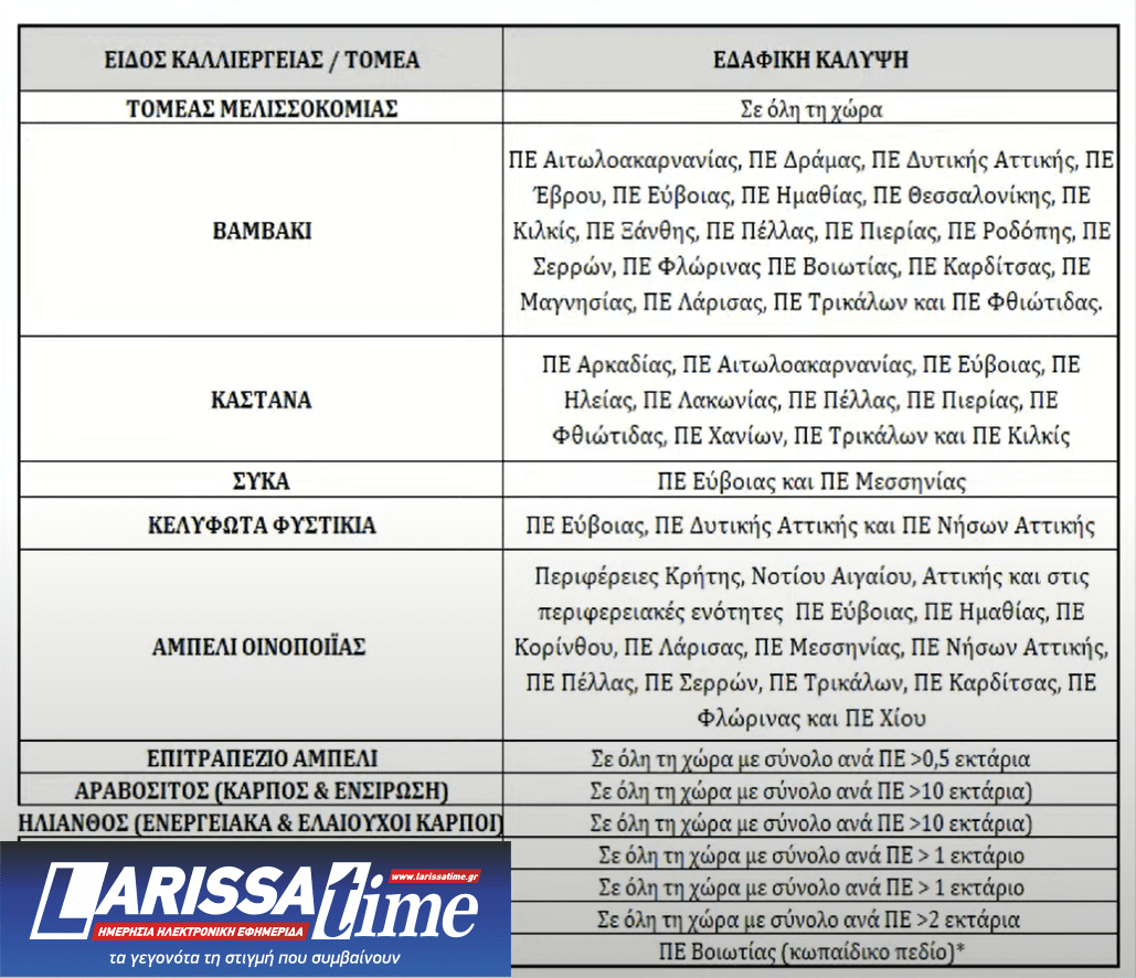 Συνοπτικά τα ποσά ανά είδος καλλιέργειας/τομέα και ανά εδαφική κάλυψη έχουν ως ακολούθως: