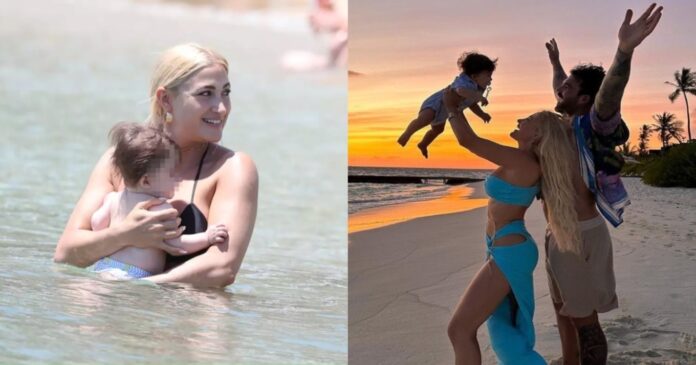 Στη συνέχεια, το ζευγάρι και ο μικρός Πάρης απολάμβαναν την παραλία, αφού αποχώρησαν από το διαμέρισμά τους για ένα δροσιστικό μπάνιο στη θάλασσα.