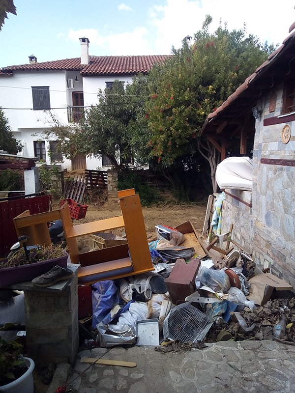Στην υπερυψωμένη μονοκατοικία στον Πλατανιά Νοτίου Πηλίου, εισχώρησε περίπου ένα μέτρο νερό, καταστρέφοντας τα πάντα. Για μήνες η οικογένεια έβγαζε λάσπες και κατεστραμμένα έπιπλα, ενώ η αίσθηση της υγρασίας και η μυρωδιά δεν έχει φύγει μέχρι και σήμερα.