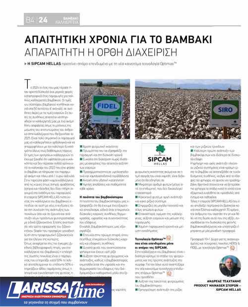 Η εταιρεία Sipcam Hellas πιστεύοντας την καλλιέργεια του βαμβακιού επενδύει σε αυτή με νέες επενδύσεις τόσο στη συνέχιση της ανάπτυξης των ποικιλιών όσο και σε έρευνα και ανάπτυξη νέων προϊόντων φυτοπροστασίας με ειδικά ζιζανιοκτόνα. Επίσης φέρνει νέο τρόπο εφαρμογής του ζιζανιοκτόνου Staple που προσφέρει μοναδική λύση στην προφυτρωτική ζιζανιοκτονία για τον έλεγχο της κύπερης.