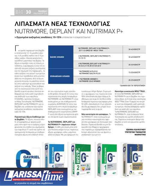 Η GAVRIEL προτείνει λιπάσματα ΝΕΑΣ ΤΕΧΝΟΛΟΓΙΑΣ: NUTRIMORE, DEPLANT και NUTRIMAX P+ για το βαμβάκι και υπόσχεται εγγυημένα αυξημένες αποδόσεις τουλάχιστον κατά 10-15%!