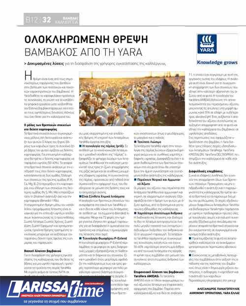Συχνά οι εδαφικές συνθήκες δεν ευνοούν την απορρόφηση όλων των θρεπτικών στοιχείων. Προκειμένου να μην επιβραδυνθεί η ανάπτυξη και η παραγωγικότητα της καλλιέργειας θα πρέπει αυτά τα θρεπτικά να τα παρέχουμε δια μέσω του φυλλώματος. Οι σειρές εξειδικευμένων διαφυλλικών λιπασμάτων YaraVita και βιοδιεγερτών YaraAmplix παράγονται με υψηλών προδιαγραφών πρώτες ύλες, με τεχνολογίες αιχμής και πολυετή τεχνογνωσία. Εξειδικευμένα σκευάσματα παρέχουν απαραίτητα θρεπτικά στοιχεία και βιο-ενεργοποιητές σε συγκεκριμένα και κρίσιμα στάδια ανάπτυξης: