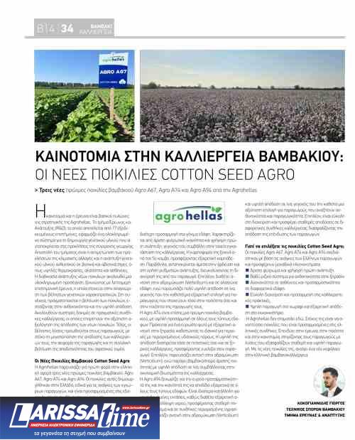 Η Agrohellas παρουσιάζει για πρώτη φορά στην ελληνική αγορά τρεις νέες πρώιμες ποικιλίες βαμβακιού: Agro A67, Agro A74 και Agro A94. Οι ποικιλίες αυτές δημιουργήθηκαν στην Ελλάδα, ειδικά για τις ανάγκες των εγχώριων παραγωγών, και είναι προσαρμοσμένες στις εδαφοκλιματικές συνθήκες της χώρας μας.