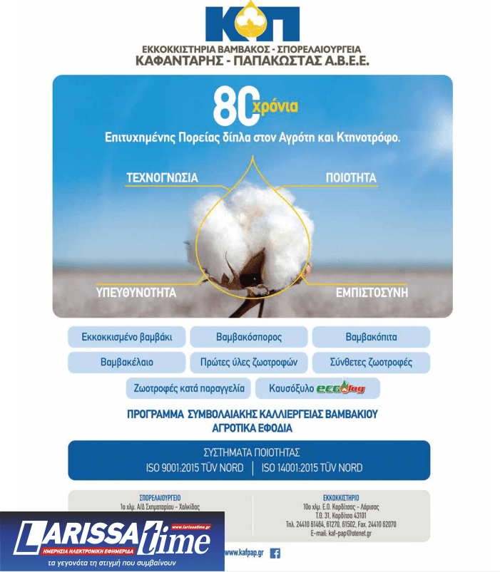 Τέλος η εταιρεία Sipcam Hellas που έχει αποδείξει περίτρανα ότι βρίσκεται κοντά στον Έλληνα καλλιεργητή 70 χρόνια , τον άνθρωπο που αγαπάει την γη και θέλει να την δώσει αυτό που της αξίζει, συναισθάνεται την δυσκολία της φετινής βαμβακοκαλλιέργειας και υποστηρίζει έμπρακτα με μία μοναδική προσφορά.