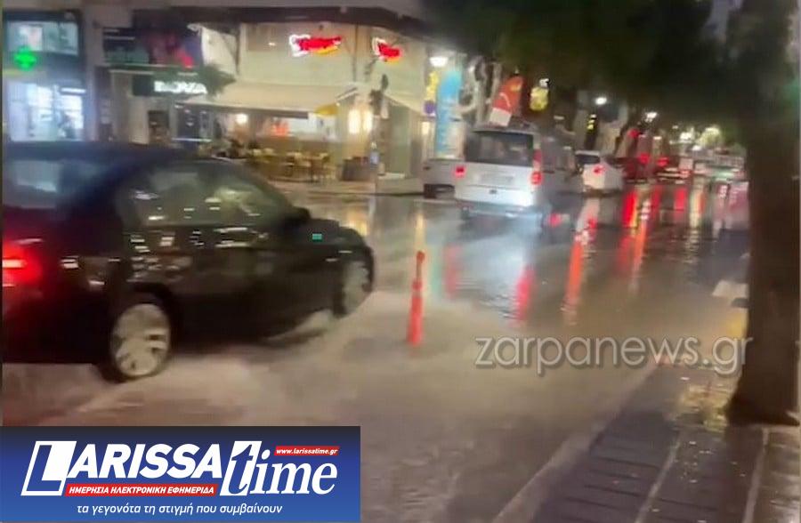 Στο βίντεο που δημοσιεύει το zarpanews.gr από την οδό Κυδωνίας, φαίνεται ότι η στάθμη του νερού είναι ιδιαίτερα υψηλή, δυσκολεύοντας τη διέλευση των πεζών και αναγκάζοντας τα οχήματα να κινούνται με χαμηλές ταχύτητες.