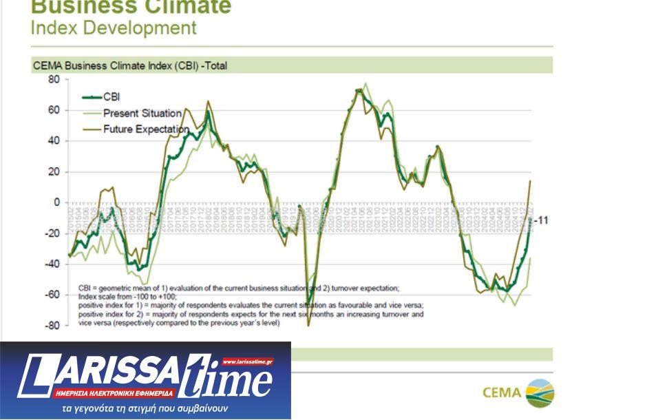 Πλησιάζει σε θετικά επίπεδα ο δείκτης επιχειρηματικού κλίματος γεωργικών μηχανημάτων της CEMA
