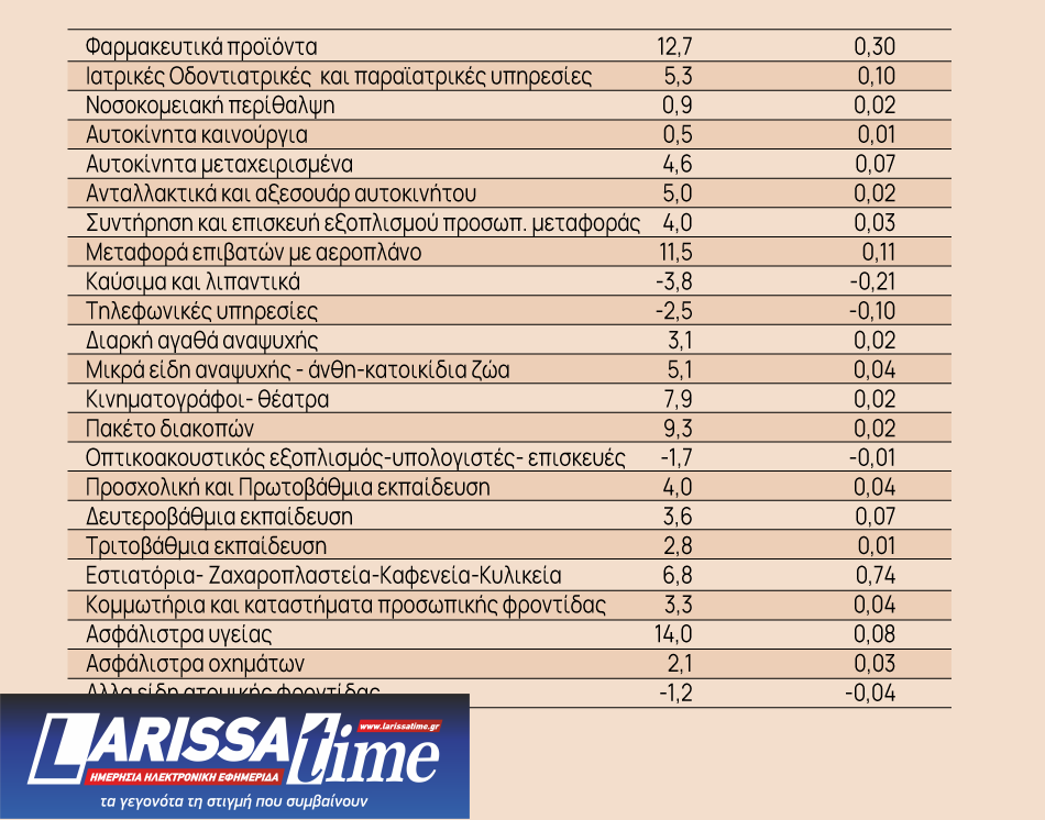 - 0,3% στην ομάδα Υγεία, λόγω αύξησης κυρίως των τιμών στα φαρμακευτικά προϊόντα.