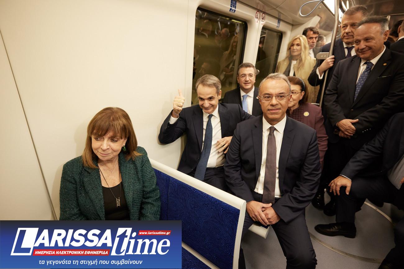 Η Κατερίνα Σακελλαροπούλου, ο Κυριάκος Μητσοτάκης και ο Χρήστος Σταϊκούρας στην πρώτη βόλτα με το Μετρό της Θεσσαλονίκης