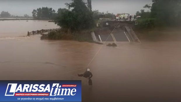 Χαρακτηριστική είναι η εικόνα από βίντεο, τη στιγμή που το νερό «καταπίνει» γέφυρα στη Σάντα Μαρία.