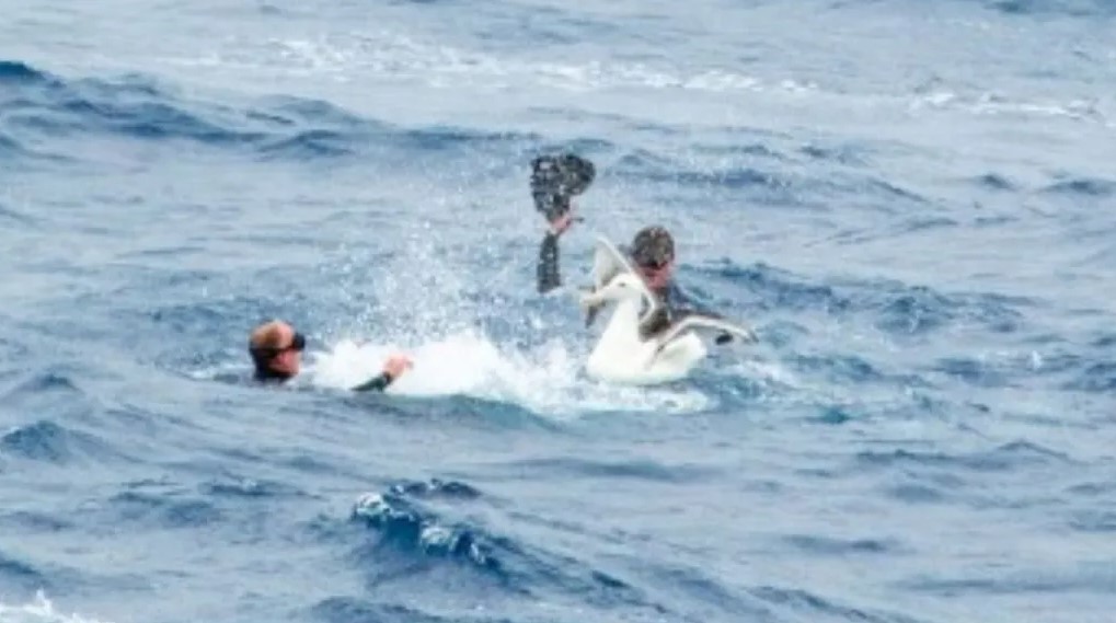 «Όταν μπήκαμε στο νερό, ένα άλμπατρος μας έδειξε εξαιρετικό ενδιαφέρον και κατέβηκε να επιτεθεί στον τύπο που βιντεοσκοπούσε την αποστολή», περιγράφει στο BBC ο Brown.