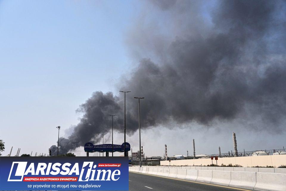 Καπνός υψώνεται μετά από επίθεση με ιρανικό drone στην περιοχή του λιμανιού του Ντουμπάι, στα Ηνωμένα Αραβικά Εμιράτα, την Κυριακή 1 Μαρτίου 2026.