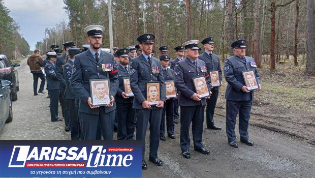 Κάτω από έναν συννεφιασμένο ουρανό, άνδρες και γυναίκες της Βασιλικής Αεροπορίας κρατώντας στα χέρια τις φωτογραφίες των πενήντα δολοφονημένων αεροπόρων παρέλασαν στον κεντρικό δρόμο του στρατοπέδου, που αποτελεί σήμερα χώρο ιστορικής μνήμης για τους εκτελεσμένους.