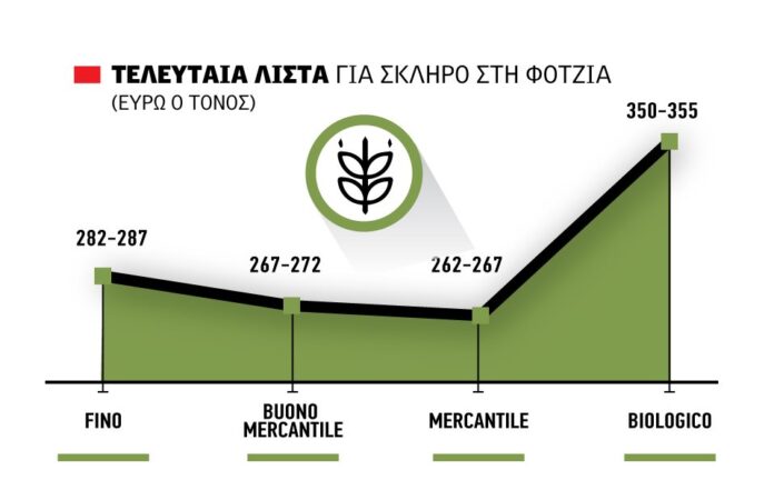 Όσον αφορά τις τιµές πλέον, η νότια Ιταλία κινήθηκε αυτή την εβδοµάδα για πρώτη φορά µετά από ένα τρίµηνο καθοδικά, µε µία αναπροσαρµογή της τάξης των 3 ευρώ ο τόνος για όλες τις ποιοτικές κατηγορίες. Συγκεκριµένα, το εµπορικό κέντρο της Φότζια δίνει στα ποιοτικά σιτάρια (Fino) µε ειδικό βάρος 79,5-80 kg/hl, υαλώδη 80% και πρωτεΐνη 12-12,5% τιµή αποθήκης εµπόρου στα 282 – 287 ευρώ ο τόνος και στη δεύτερη ποιότητα (Buono Mercantile) µε ειδικό βάρος 78 kg/hl, υαλώδη 65% και πρωτεΐνη 11-11,5% τιµή αποθήκης εµπόρου στα 267 – 272 ευρώ ο τόνος. Η τρίτη ποιότητα µε ειδικό βάρος 76 kg/hl, υαλώδη 50% (Mercantile) παίζει πλέον στα 262 µε 267 ευρώ ο τόνος. Οι ελληνικές τιµές παίζουν στα 245 µε 250 ευρώ ο τόνος FOB, µε λίγες δουλειές ωστόσο µιας που λίγο ελληνικό σκληρό παραµένει απούλητο.