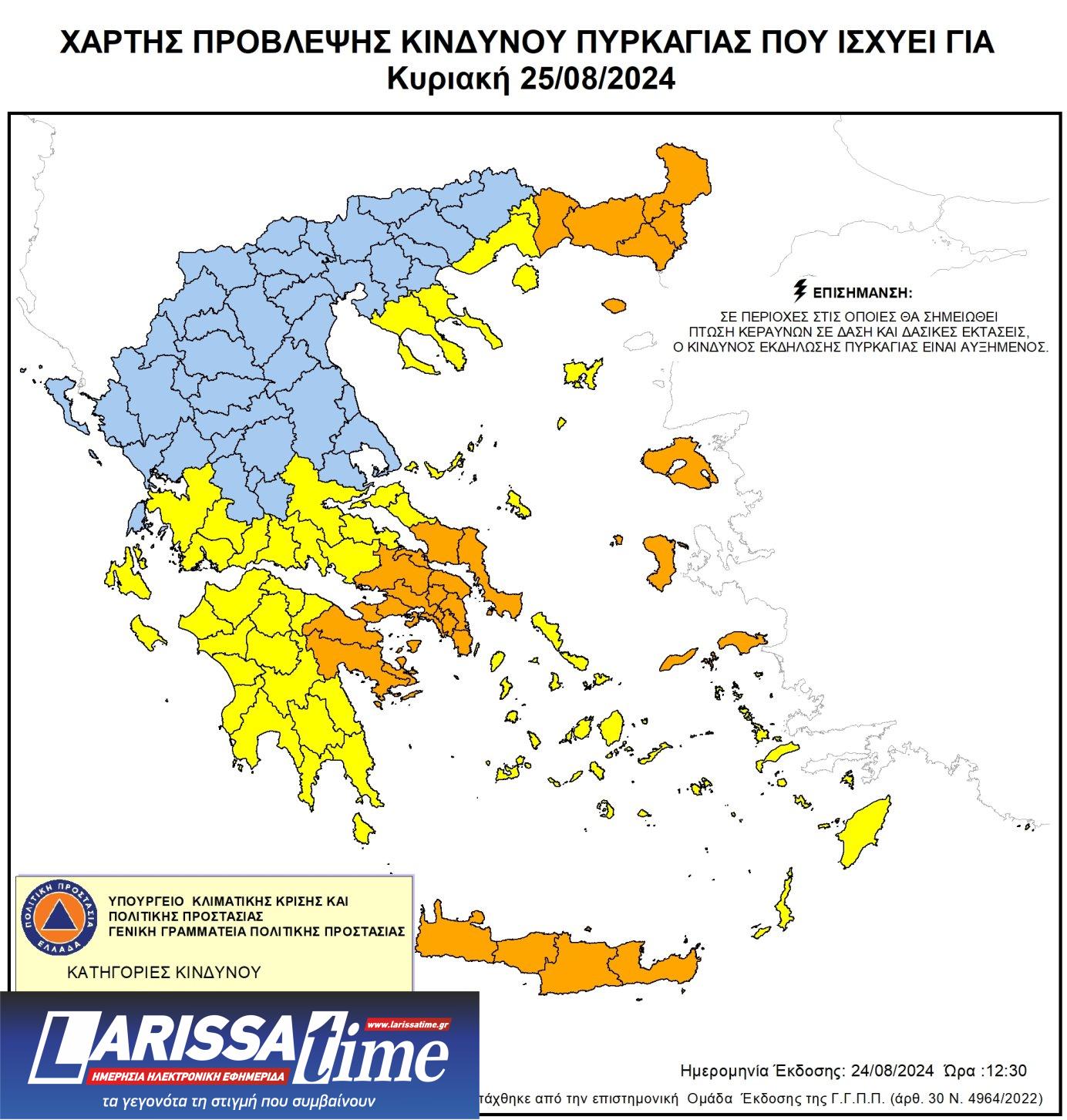 ⚠️ Χάρτης Πρόβλεψης Κινδύνου 🔥 για αύριο Κυριακή 25/08: