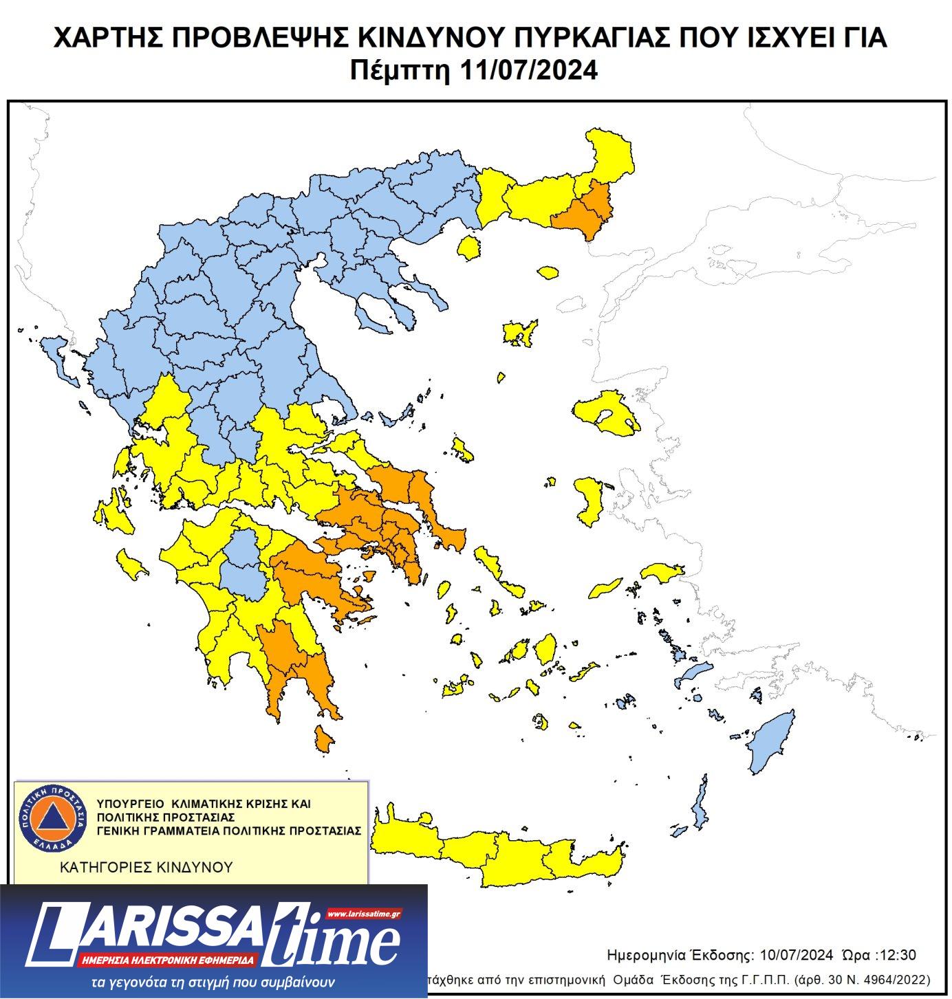 ⚠️ Χάρτης Πρόβλεψης Κινδύνου 🔥 για αύριο Πέμπτη 11/7: