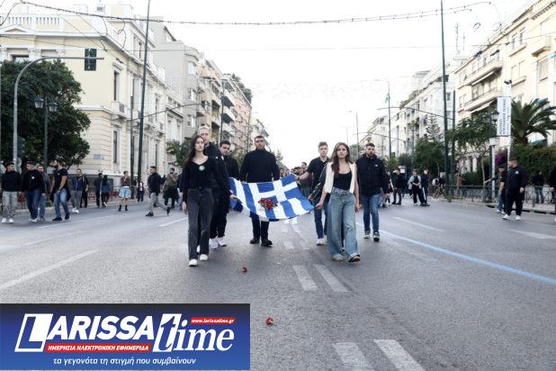 Στην κορυφή της πορείας για την 52η επέτειο της εξέγερσης του Πολυτεχνείου, κρατώντας το ένα άκρο της αιματοβαμμένης ελληνικής σημαίας, βρέθηκε η κόρη της αείμνηστης προέδρου του ΠΑΣΟΚ-ΚΙΝΑΛ, Φώφης Γεννηματά.