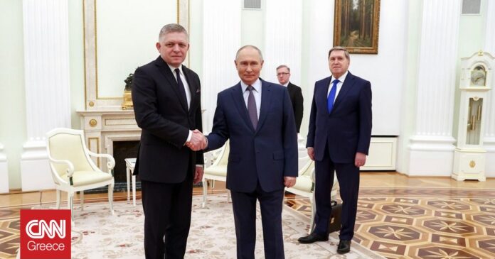 Την πόρτα του Κρεμλίνου, όπου και συναντήθηκε με τον Βλαντιμίρ Πούτιν πέρασε τη Κυριακή (22/12) ο πρωθυπουργός της Σλοβακίας, Ρόμπερτ Φίτσο σε μια σπάνια επίσκεψη ηγέτη της Ε.Ε. μετά την εισβολή της Μόσχας στην Ουκρανία τον Φεβρουάριο του 2022.
