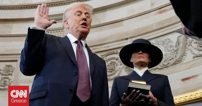 «Η χρυσή εποχή της Αμερικής αρχίζει τώρα», δήλωσε ο κ. Τραμπ ξεκινώντας μια 29λεπτη ομιλία για την ορκωμοσία, λίγο αφότου ο ίδιος και ο αντιπρόεδρος Τζέι Ντι Βανς έδωσαν τον όρκο τους στη Ροτόντα του Καπιτωλίου.